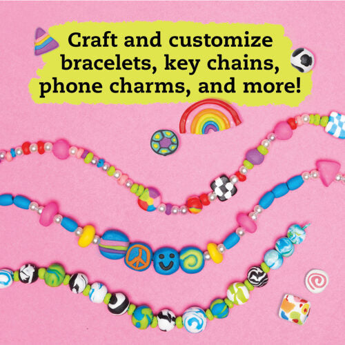 Using nine different colors of polymer clay, learn techniques for making more than 15 different types of beads, such as letter beads, canes, millefiori, and more! Includes a special tool for easily making the holes of the beads, sculpting accessories, faux pearl spacer beads, and two colors of elastic cording to string your finished pieces. Step-by-step instructions give crafters confidence to express themselves with custom creations.