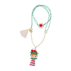 Lilies & Roses NY's necklace is detailed with a festive elf all decked out in red, white, and green.
