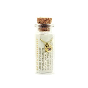 Celebrate your birth month with a classic satin-finish pendant necklace that comes within a small glass bottle. Each stone carries unique qualities to illuminate and inspire. Whether you gift it or wear it - it pairs perfectly with casual or fancy attire. Each crystal pendant necklace is dipped in 14k gold with an adjustable 16-18" chain and comes inside an adorable glass bottle with a cork top.