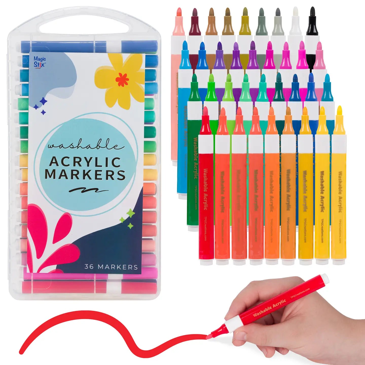 The first ever Washable and completely non-toxic Acrylic Paint Pens! For use on: Glassware, Wood, Canvas, Windows and Mirrors, and more. Washes off from most surfaces. No toxic chemicals or odors.