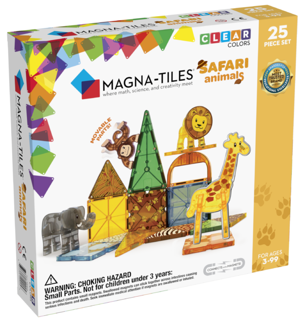 Embark on a fun-filled safari with the Magna-Tiles® Safari Animals 25-Piece Set. Inquisitive kids can let creativity lead the way as they follow the footprints of each adorable animal and erect habitats in vibrant colors. From finding new ways to monkey around with the magnetic shapes to inventing creative creature adventures, there are many ways to bring nature to life in your home or classroom.