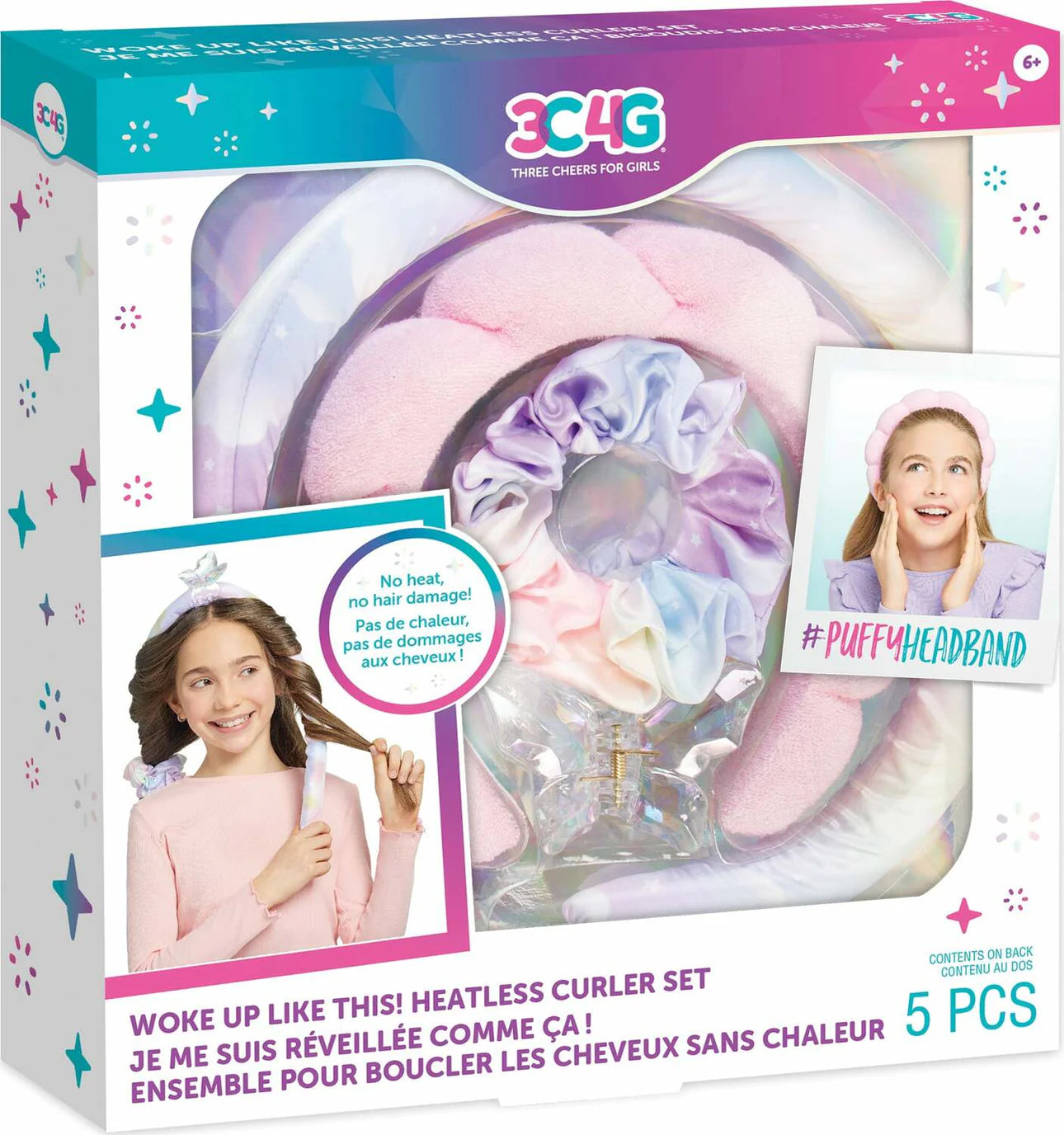 Tweens can style their curls with the colorful scrunchies and/or butterfly clip to head out and about, and use the super trendy puffy headband to keep hair out of the way while washing up for bed. This heatless curler and accessory set makes the perfect gift idea for style-savvy tweens, whether its for a birthday bash, holiday, or just because! Perfect for ages 8+.