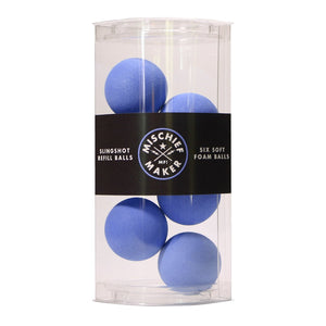 The Mischief Maker Refill Pack comes with 6 blue soft foam balls packaged in a clear display tube. Makes a great gift.
