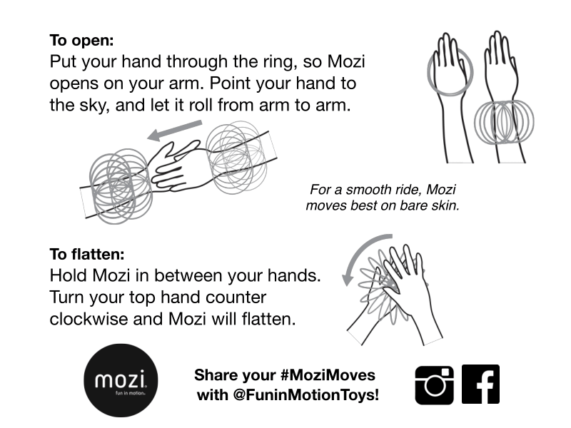 Mozi is like a slinky for your arm. It spins continuously and effortlessly as it moves up and down – from one arm to another, or as you pass it to a friend. Watching it glide is just as mesmerizing and addicting as it is to use. Get your groove on and feel the movement!