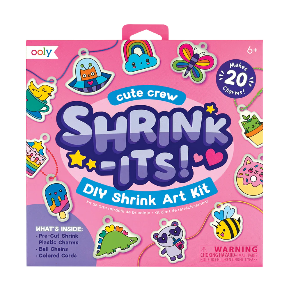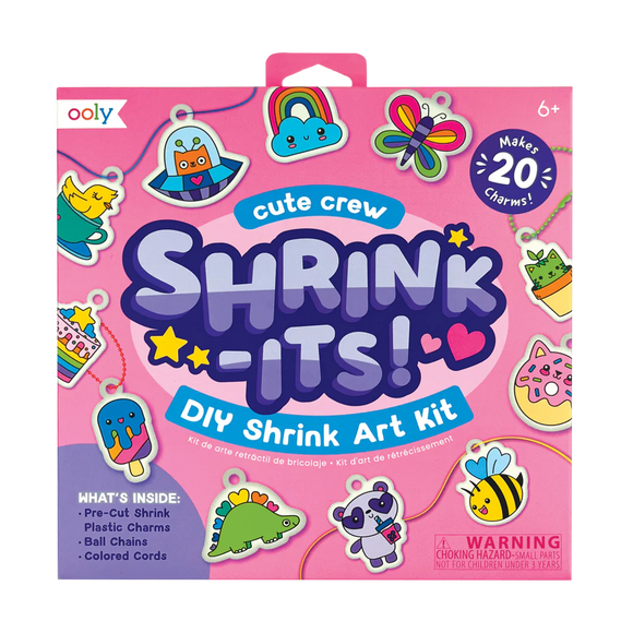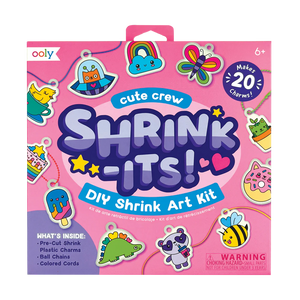 Your crew of cuties awaits in this shrink art kit. It has everything you need to create a fun charm to put on your keychain, backpack, or door! Just color in the included charms, watch them shrink down in an oven, and attach them to the cord or ball chain provided in the kit!