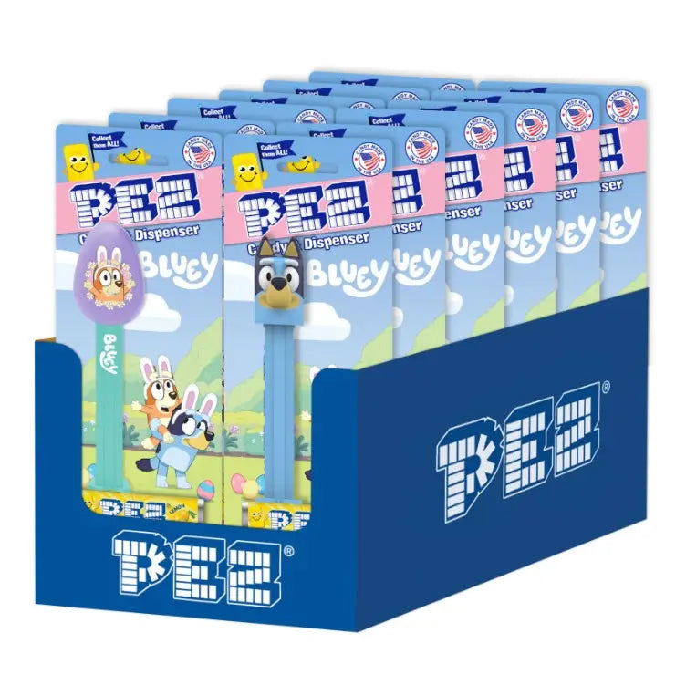 Hop into Easter with a little Bluey magic! The PEZ Easter Bluey Assortment Blister brings everyone’s favorite pup to your candy aisle in style. Each pack features a collectible PEZ dispenser shaped like Bluey (because who says the Easter Bunny has all the fun?) along with a selection of sweet, fruity PEZ candies that deliver nostalgia with every chew. This 12-count retail-ready display is perfect for Easter baskets, candy counters, party favors, or any seasonal promotion that wants to mix pop culture with classic candy fun. Collectible, colorful, and totally snackable, these PEZ dispensers turn a simple treat into an Easter adventure.