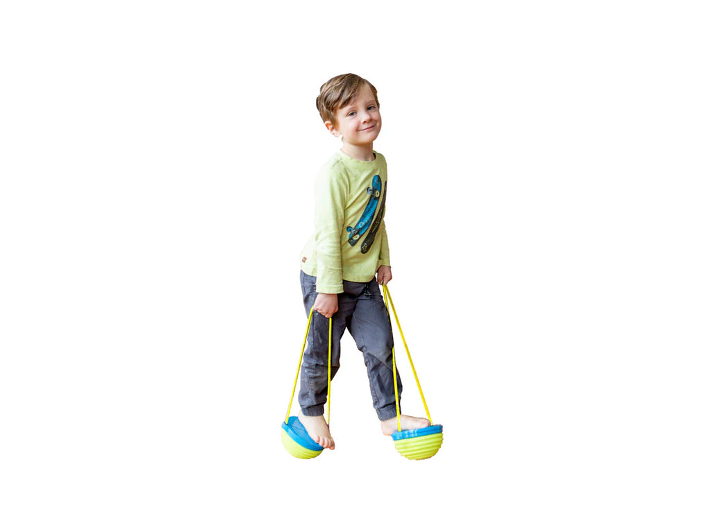 • Set of foam-based stilts designed for toddlers and young kids to learn how to balance and concentrate as they walk