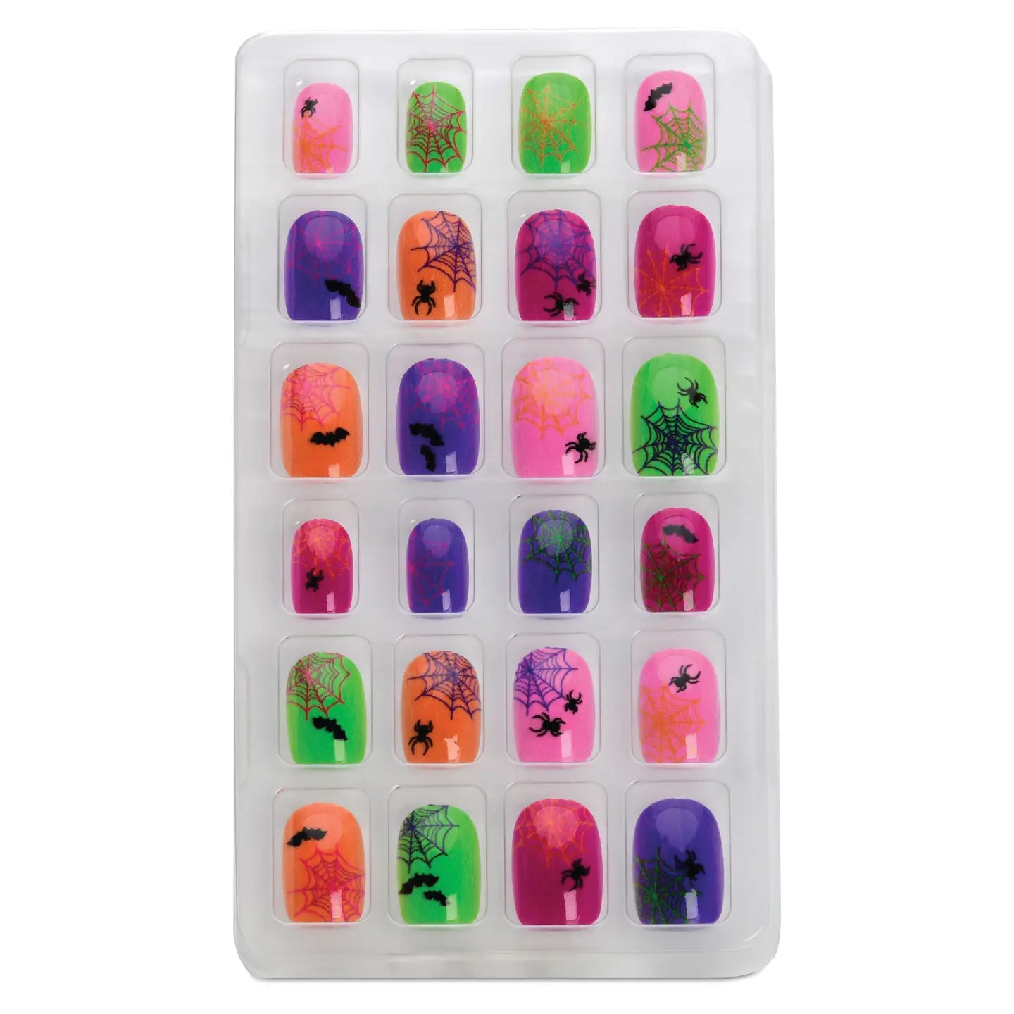 Fun and easy spider designed neon nail set. Includes set of 24 press on nails
