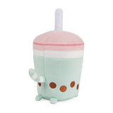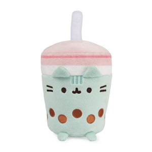 Pusheen has arrived as a refreshingly delicious boba tea! This eye-catching mint-green Pusheen boba cup plush stands six inches tall, complete with a straw, pink lid, and amber-colored embroidered tapioca pearls.