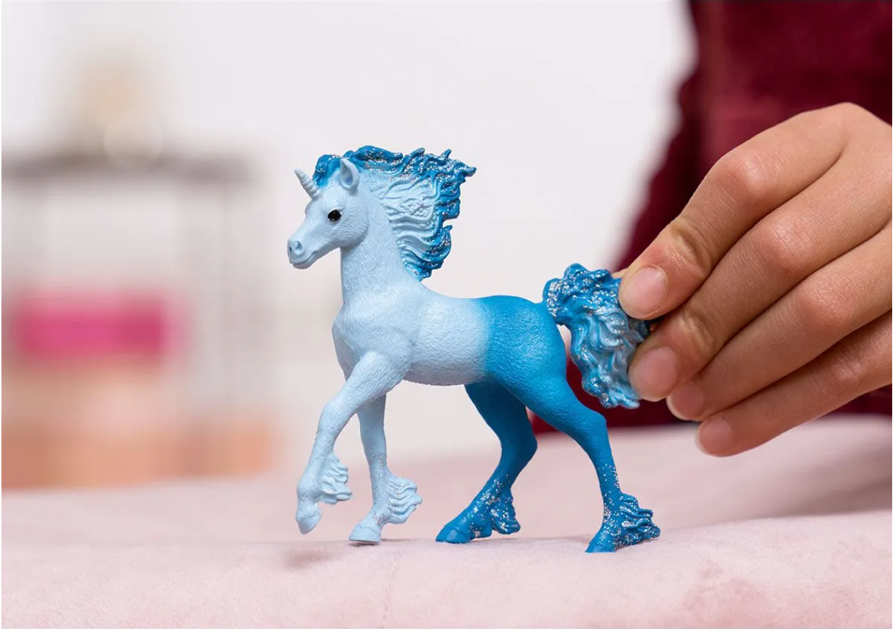 With a sea blue coat like the Elementa Water Unicorn mare, and a wind-swept mane like the Elementa Fire Unicorn Stallion, the Elementa Water Unicorn Foal is a true one-of-a-kind. One of three new Elementa unicorns released by schleich® in early 2023.