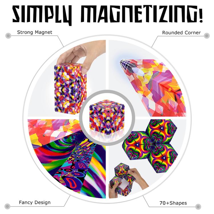 Unlock the mystery of Shashibo! Each Shashibo is powered by 36 rare earth magnets. 1 cube transforms into over 70 shapes. Combine 2 or more Shashibos to build larger shapes and create more possibilities. Can you master the shape shifting box?
