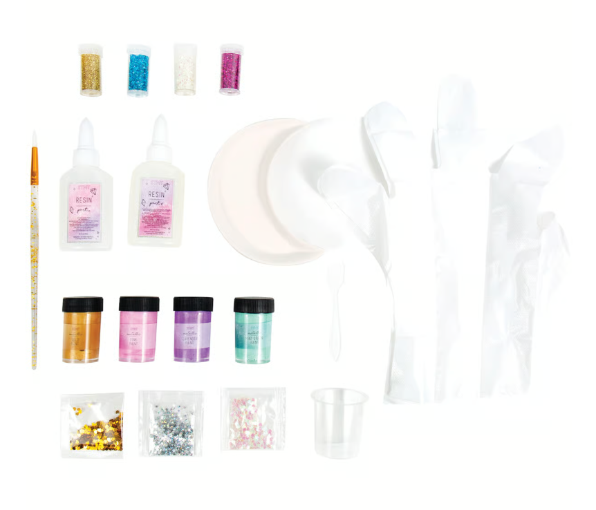 Discover the magic of resin art and hold your favorite accessories in style with the STMT D.I.Y. Resin Jewelry Dish! Complete with a crescent moon-shaped ceramic dish, 2 bottles of liquid resin, 4 metallic paints, glitter embellishments, a spatula, and a paintbrush to bring it all to life — this set has everything you need to learn how to work with craft resin and create a one-of-a-kind accessory you’ll cherish forever.