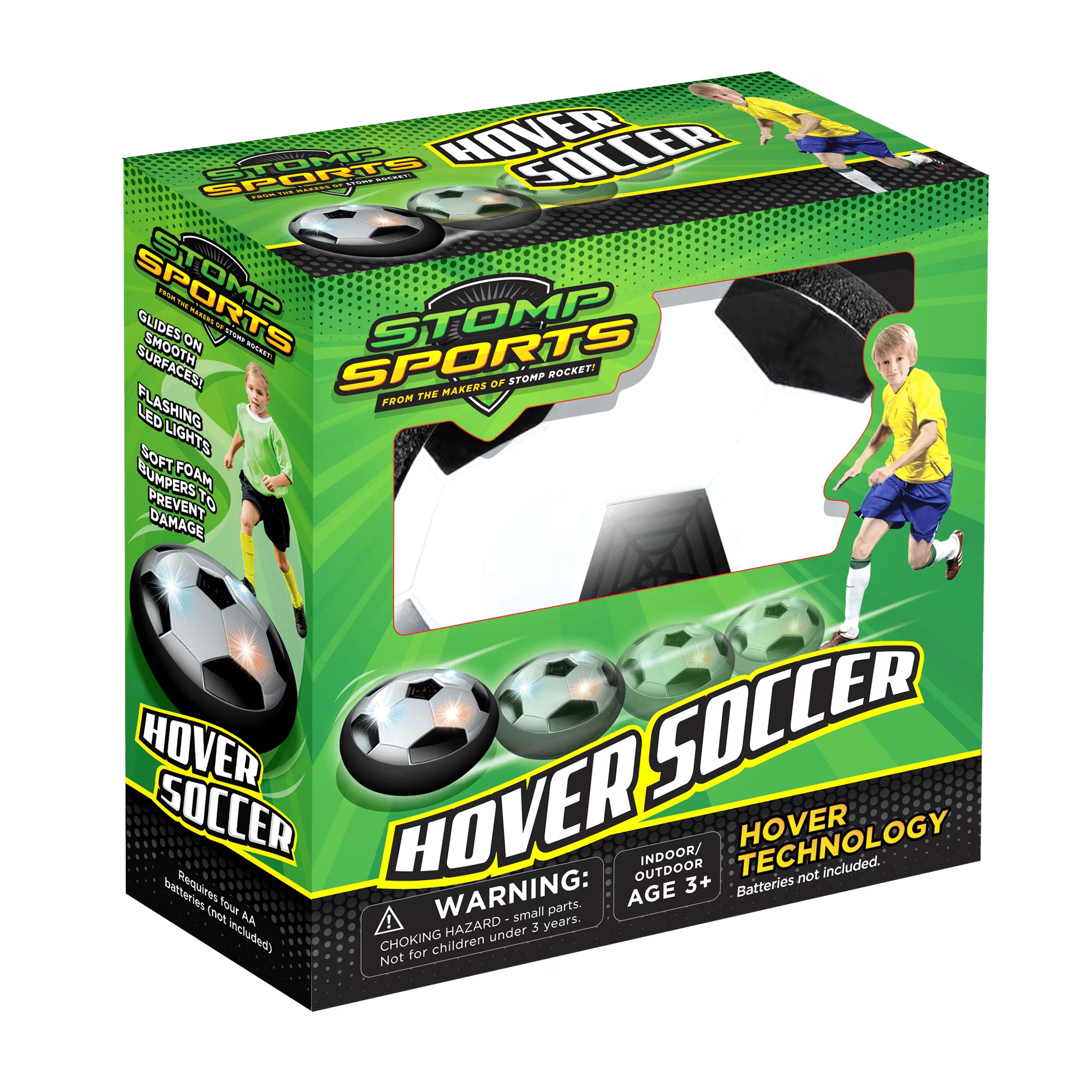 SOCCER MEETS AIR HOCKEY: Show off your footwork while experiencing the fast-paced thrill of air hockey with Stomp Sports Hover Soccer. Features revolutionary hover technology that glides effortlessly on smooth indoor surfaces such as wood, tile, & vinyl. The foam padded edges help protect your furniture from damage. Includes 1 Hover Soccer, requires 4 AA Batteries not included.