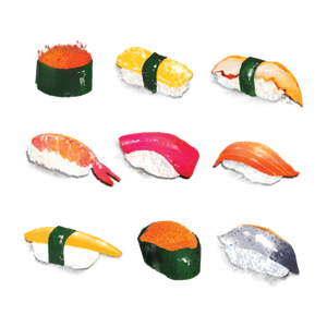Artist Nancy Pappas sure does know how to order. Don't these mini sushi rolls look temporarily delicious?