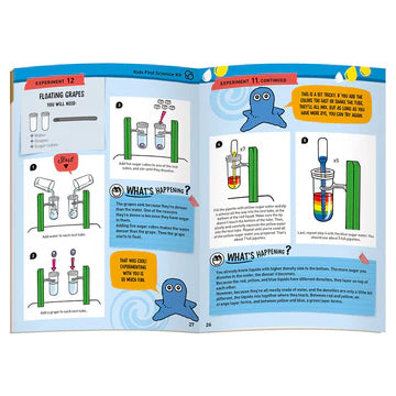 The quick and easy experiments in this set playfully introduce children ages five and up to fascinating natural phenomena. With Blobert — a small blob-shaped figure with googly eyes they create in the first experiment — as their guide, curious young minds can safely and confidently explore different aspects of this fundamental science including surface tension, solutions, mixtures, density, buoyancy, and more. Cast slippery alginate shapes, blow iridescent soap bubbles, create a rainbow in a test tube, and make grapes dance!