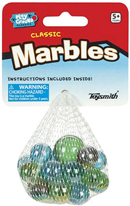 Is there anything as satisfying as sharing a classic toy with a new generation? Play the classic game of knocking an opponent’s marbles out of a ring or explore gravity with a chute run. This iconic toy set includes 24 multicolored glass marbles and 1 glass shooter marble. Instructions are printed inside the packaging. Marbles come in assorted patterns. Packaged in a net bag, making the colorful marbles easily visible to consumers.
