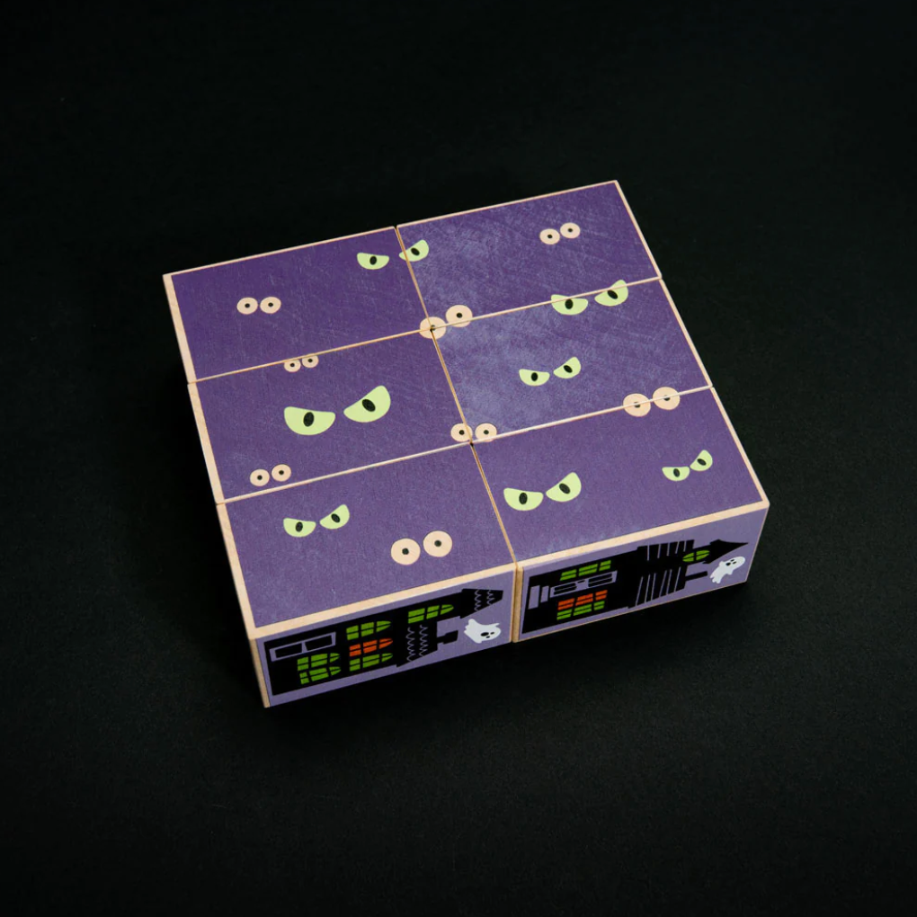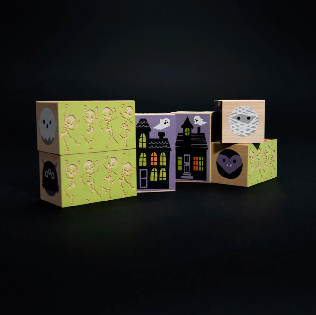Let the magic of Halloween come to life with these spooky stackables! How many jack o’lanterns, ghosts, haunted houses, and staring eyeballs can you count? Find monsters, a mummy, and more. Debossed dancing skeletons add an extra layer of tactile fun. Get ready for a bewitching Halloween!