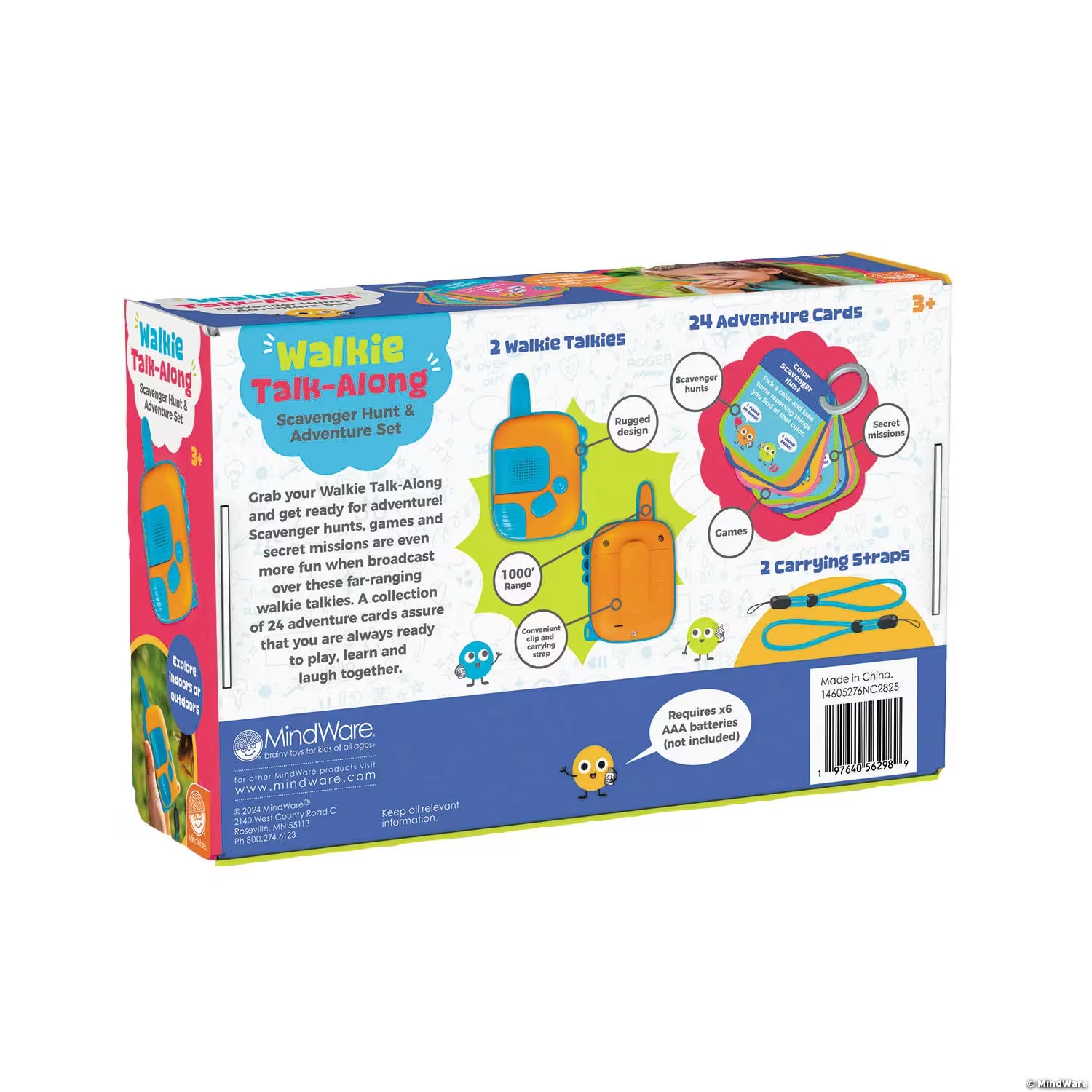 Grab your Walkie Talk-Along and get ready for adventure! This action-packed set turns ordinary days into exciting missions filled with teamwork, creativity, and laughter. With a 1,000-foot range, these rugged walkie talkies keep kids connected as they take on scavenger hunts, secret missions, and outdoor games guided by 24 double-sided adventure cards. Whether exploring the backyard, park, or neighborhood, kids can communicate, collaborate, and create their own adventures on the go!