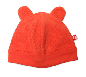 Our classic Zutano bear ear Cozie hat is such a great choice for when temperatures cool down! Featured here in cheery mandarin. 80/20 cotton/poly. Style #QFL.
